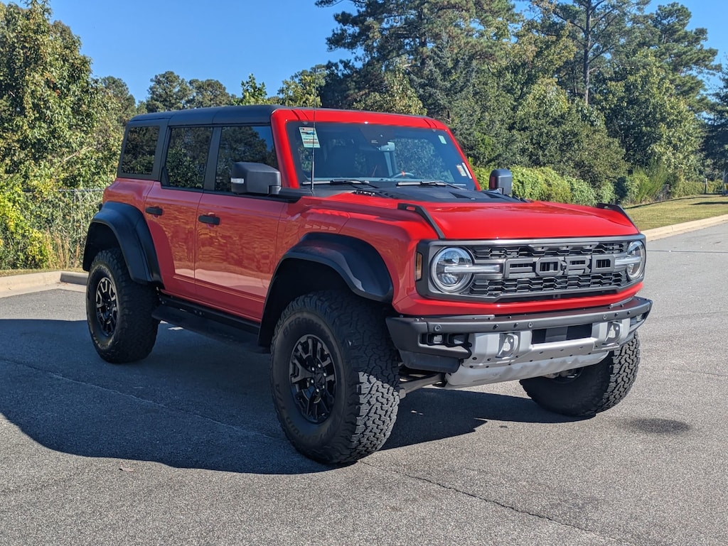 Priced below KBB Fair Purchase Price! CARFAX One-Owner. Code Orange 2023 Ford Bronco Raptor 4WD 10-Speed Automatic 3.0L EcoBoost V6 1-OWNER, CLEAN CARFAX, LOCAL TRADE IN, BACK UP CAMERA, LEATHER, HEATED SEATS, 4-WHEEL DRIVE, TOW HOOKS FRONT 2 REAR 2, AUX SWITCHES W PRE-WIRING, IP CLUSTER 8" DIGITAL SCREEN, SPORT LEATHER STEERING WHEEL W PADDLE SHIFTERS, 12" LCD CTR STACK TOUCHSCREEN, 360-DEGREE CAMERA, 4GWI-FI HOTSPOT TELEMATICS MODEM, FRONT/REAR LOCKING DIFF, HIGH PACKAGE, HOSS 4.0 SUSPENSION W FOX LIVE VALVE DAMPERS, PRE-COLLISION ASSIST W AEB, RAPTOR TOOL KIT, TER MGMT W G.O.A.T. MODES, RAPTOR SERIES, 17" BLACK HIGH GLOSS PTD ALUMINUM WHEELS, HARD TOP, FROMT ROW TOP PANEL STORAGE BAG, SOUND DEADENING HEADLINER, INTERIOR CARBON FIBER PACK, LEATHER-TRIM / SUEDE SEATS, 1-OWNER, CLEAN CARFAX, MUST SEE!, ABS brakes, AM/FM radio: SiriusXM with 360L, Auto High-beam Headlights, Auto-dimming Rear-View mirror, Compass, Convertible HardTop, Equipment Group 373A High Package, Exterior Parking Camera Rear, Front dual zone A/C, Fully automatic headlights, Glass rear window, Heated front seats, Illuminated entry, Interior Carbon Fiber Pack 6, Leather Shift Knob, Navigation system: Connected Navigation, Power steering, Split folding rear seat, Steering wheel mounted audio controls, Traction control, Turn signal indicator mirrors, Wheels: 17" Black High Gloss-Painted Aluminum.