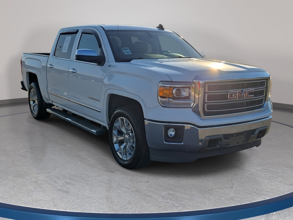 Summit White 2015 GMC Sierra 1500 SLT 4WD 6-Speed Automatic Electronic with Overdrive EcoTec3 5.3L V8 6-Speed Automatic Electronic with Overdrive, 4WD, Cocoa/Dune Leather, 110-Volt AC Power Outlet, 150 Amp Alternator, 20" x 9" Polished Aluminum Wheels, 4.2" Diagonal Color Display Driver Info Center, 6" Rectangular Chromed Tubular Assist Steps, Auto-Dimming Inside Rear-View Mirror, Auxiliary External Transmission Oil Cooler, Chrome Bodyside Moldings, Chrome Door Handles, Chrome Grille Surround, Chrome Mirror Caps, Color-Keyed Carpeting w/Rubberized Vinyl Floor Mats, Deep-Tinted Glass, Driver & Front Passenger Illuminated Vanity Mirrors, Dual-Zone Automatic Climate Control, Electric Rear-Window Defogger, Electronic Autotrac Transfer Case, EZ Lift & Lower Tailgate, Front Frame-Mounted Black Recovery Hooks, Front Halogen Fog Lamps, Heavy-Duty Rear Locking Differential, Hill Descent Control, Leather Wrapped Steering Wheel w/Cruise Controls, LED Cargo Box Lighting, Manual Tilt Wheel Steering Column, Off-Road Suspension Package, OnStar 6 Months Directions & Connections Plan, OnStar w/4G LTE, Power Adjustable Pedals, Power Folding & Adjustable Heated Outside Mirrors, Power Windows w/Driver Express Up & Down, Preferred Equipment Group 4SA, Rear 60/40 Folding Bench Seat (Folds Up), Rear Vision Camera w/Dynamic Guide Lines, Rear Wheelhouse Liners, Remote Keyless Entry, Remote Vehicle Starter System, Single Slot CD/MP3 Player, SLT Crew Cab Value Package, Steering Wheel Audio Controls, Theft Deterrent System (Unauthorized Entry), Trailering Equipment, Universal Home Remote.