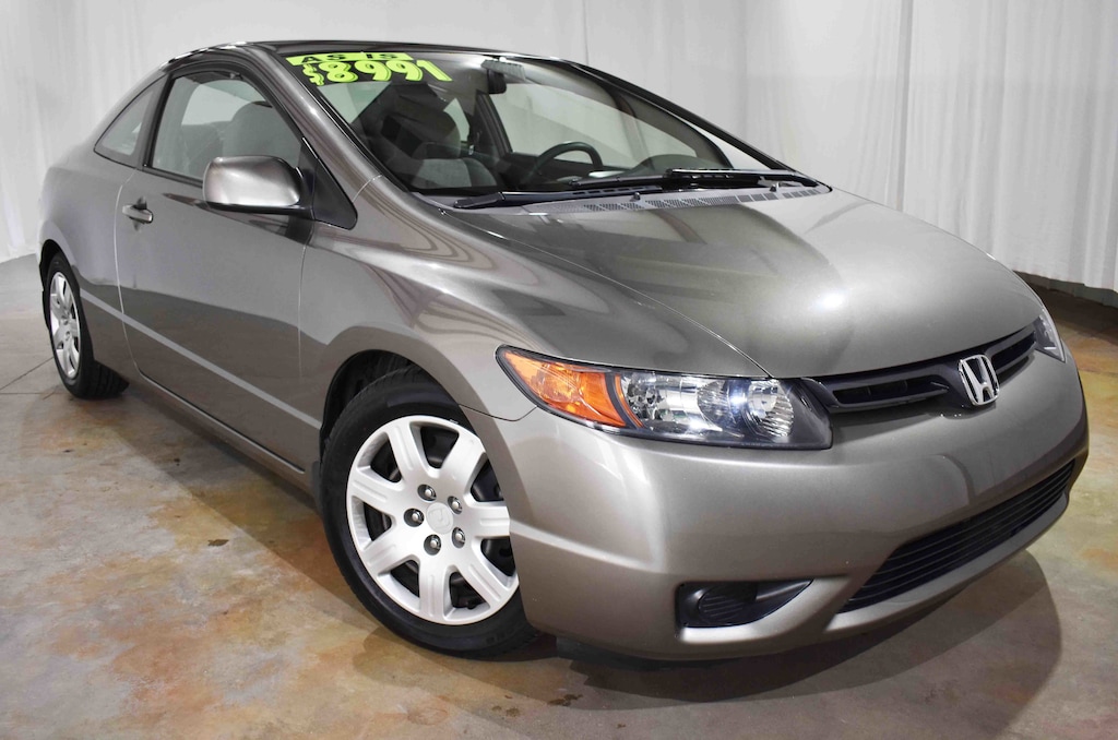 Clean CARFAX. CARFAX One-Owner. Galaxy Gray Metallic 2007 Honda Civic LX FWD Compact 5-Speed Automatic 1.8L I4 SOHC 16V i-VTEC 16" Wheels w/Full Covers, 6 Speakers, ABS brakes, Air Conditioning, AM/FM CD Audio System, AM/FM radio, Anti-whiplash front head restraints, Bumpers: body-color, CD player, Cloth Seat Trim, Driver door bin, Driver vanity mirror, Dual front impact airbags, Dual front side impact airbags, Four wheel independent suspension, Front anti-roll bar, Front Bucket Seats, Front Center Armrest, Front reading lights, Illuminated entry, Occupant sensing airbag, Overhead airbag, Panic alarm, Passenger door bin, Passenger vanity mirror, Power door mirrors, Power steering, Power windows, Rear anti-roll bar, Rear window defroster, Remote keyless entry, Security system, Speed control, Speed-sensing steering, Spoiler, Tachometer, Telescoping steering wheel, Tilt steering wheel.