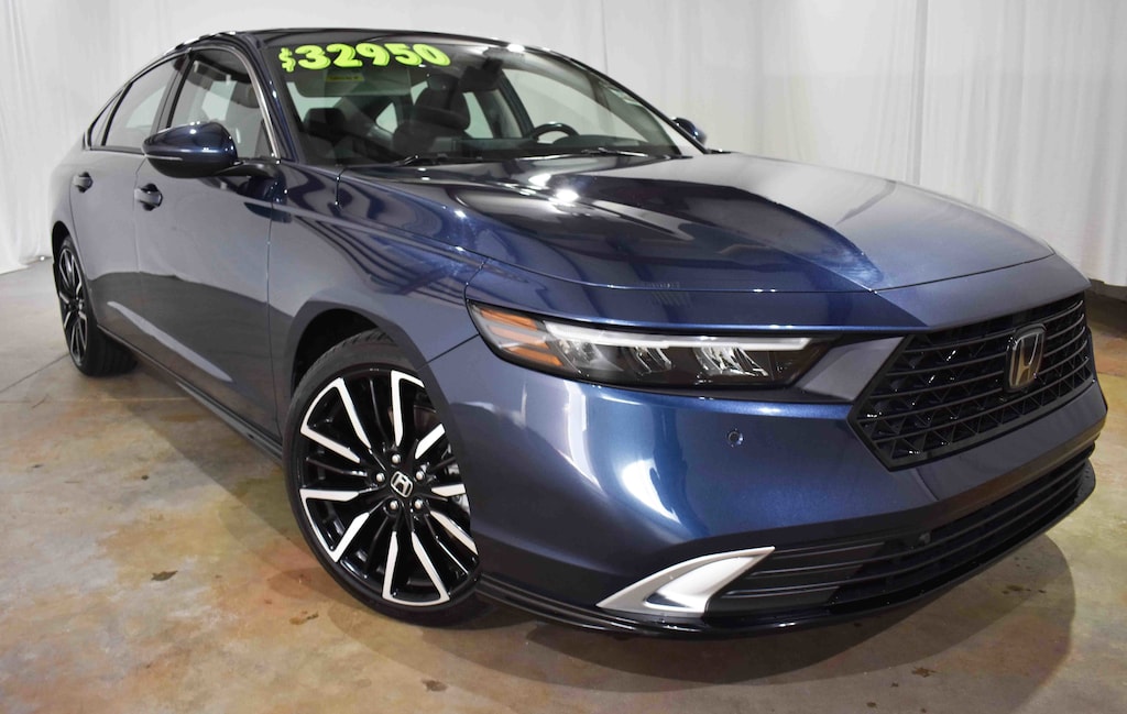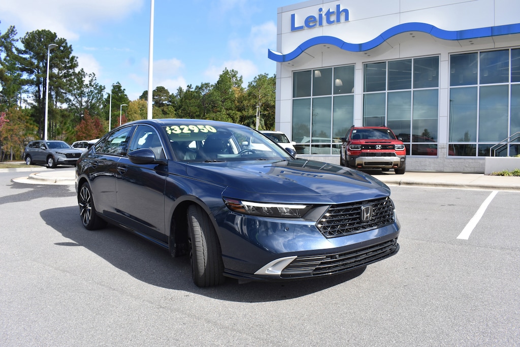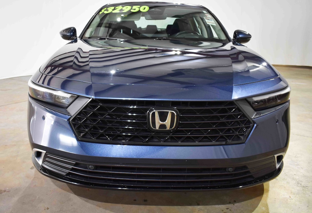 Clean CARFAX. CARFAX One-Owner. Canyon River Blue Metallic 2023 Honda Accord Hybrid Touring FWD eCVT 2.0L 16V DOHC 12 Speakers, 4-Wheel Disc Brakes, ABS brakes, Adaptive Cruise Control: Adaptive Cruise Control (ACC) with Low-Speed Follow, Adaptive suspension, Air Conditioning, Alloy wheels, AM/FM radio, Apple CarPlay/Android Auto, Auto High-beam Headlights, Auto-dimming Rear-View mirror, Automatic temperature control, Bose Premium Sound System, Brake assist, Bumpers: body-color, Compass, Delay-off headlights, Dual front impact airbags, Dual front side impact airbags, Electronic Stability Control, Emergency communication system: HondaLink, Exterior Parking Camera Rear, Four wheel independent suspension, Front anti-roll bar, Front dual zone A/C, Fully automatic headlights, Heads-Up Display, Heated & Ventilated Front Bucket Seats, Heated door mirrors, Heated front seats, Heated rear seats, Illuminated entry, Knee airbag, Lane departure: Lane Keeping Assist System (LKAS) active, Leather Shift Knob, Leather steering wheel, Leather-Trimmed Seat Trim, Low tire pressure warning, Memory seat, Navigation system: Google Built-In, Occupant sensing airbag, Outside temperature display, Overhead airbag, Panic alarm, Power door mirrors, Power driver seat, Power moonroof, Power passenger seat, Power steering, Power windows, Radio data system, Rain sensing wipers, Rear anti-roll bar, Rear side impact airbag, Rear window defroster, Remote keyless entry, Security system, Speed control, Speed-sensing steering, Speed-Sensitive Wipers, Split folding rear seat, Steering wheel mounted audio controls, Telescoping steering wheel, Tilt steering wheel, Traction control, Trip computer, Turn signal indicator mirrors, Variably intermittent wipers, Ventilated front seats, Wheels: 19" x 8.5J Berlina Black.