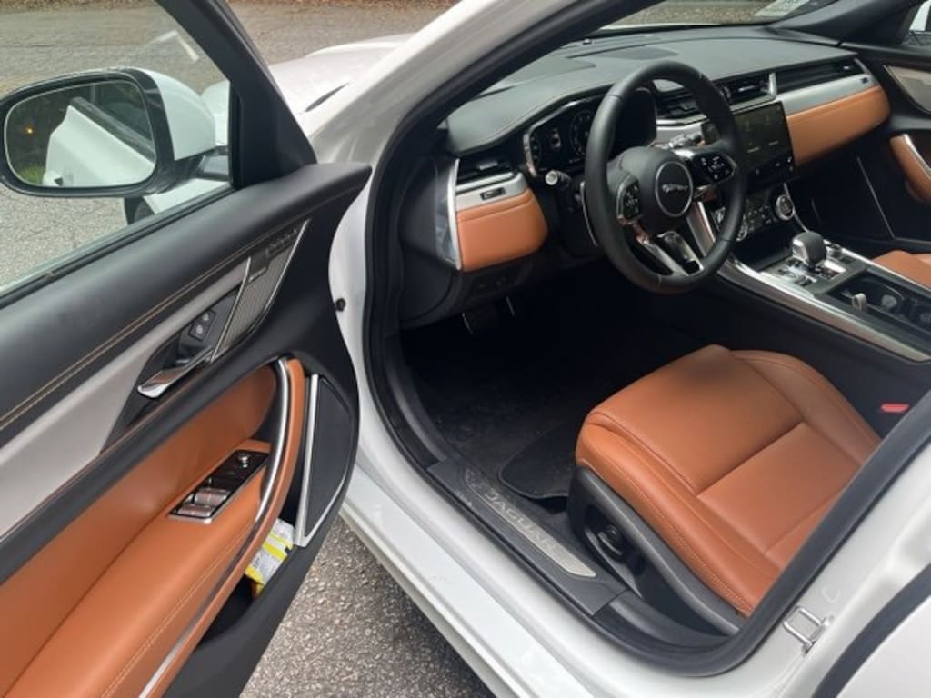 Certified. Fuji White 2024 JAGUAR XF R-Dynamic SE RWD 8-Speed Automatic 2.0L I4 16V Turbocharged Siena Tan/Ebony/Siena Tan w/Perforated DuoLeather Seat Trim.