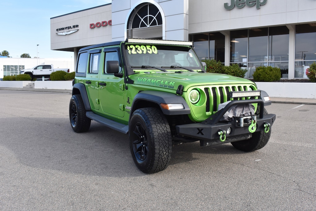 Clean CARFAX. Mojito! Clearcoat 2018 Jeep Wrangler Unlimited Sport S 4WD 8-Speed Automatic 3.6L V6 24V VVT 220 Amp Alternator, 240 Amp Alternator, 3.45 Rear Axle Ratio, 4-Wheel Disc Brakes, 7 & 4 Pin Wiring Harness, 7.0" Touchscreen Display, 700 Amp Maintenance Free Battery, 8 Speakers, ABS brakes, Air Conditioning, Air Conditioning w/Auto Temperature Control, Air Filtering, Alpine Premium Audio System, AM/FM radio, Apple CarPlay, Automatic Headlamps, Auxiliary Switches, Black 3-Piece Hard Top, Blind Spot & Cross Path Detection, Brake assist, Class II Receiver Hitch, Cloth Low-Back Bucket Seats, Cluster 7.0" TFT Color Display, Cold Weather Group, Compass, Convenience Group, Deep Tint Sunscreen Windows, Delay-off headlights, Dual front impact airbags, Dual front side impact airbags, Electronic Stability Control, For More Info, Call 800-643-2112, Freedom Panel Storage Bag, Front 1-Touch Down Power Windows, Front anti-roll bar, Front fog lights, Google Android Auto, GPS Antenna Input, Heated Front Seats, Heated Steering Wheel, Injection Molded Black Rear Bumper, Integrated Center Stack Radio, Integrated roll-over protection, Leather Wrapped Steering Wheel, LED Taillamps, Low tire pressure warning, Non-Lock Fuel Cap w/o Discriminator, Normal Duty Suspension, Occupant sensing airbag, Outside temperature display, ParkSense Rear Park Assist System, ParkView Rear Back-Up Camera, Power Heated Mirrors, Power steering, Quick Order Package 24S Sport S, Radio data system, Radio: Uconnect 3 w/5" Display, Radio: Uconnect 4 w/7" Display, Rear anti-roll bar, Rear Window Defroster, Rear Window Wiper/Washer, Remote Keyless Entry, Safety Group, Security Alarm, SiriusXM Satellite Radio, Speed control, Speed Sensitive Power Locks, Split folding rear seat, Steering wheel mounted audio controls, Sun Visors w/Illuminated Vanity Mirrors, Tachometer, Technology Group, Telescoping steering wheel, Tilt steering wheel, Traction control, Trailer Tow & HD Electrical Group, Trip computer, Tubular Side Steps (DISC), Universal Garage Door Opener, USB Host Flip, Variably intermittent wipers, Wheels: 17" x 7.5" Tech Silver Aluminum.