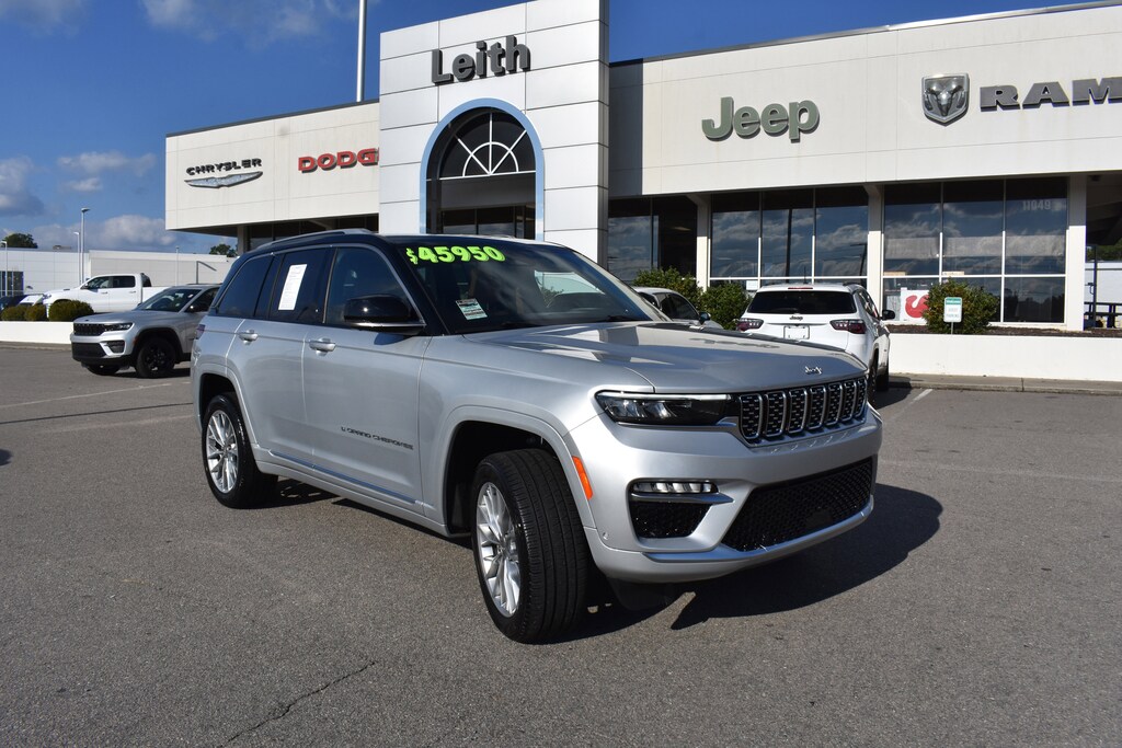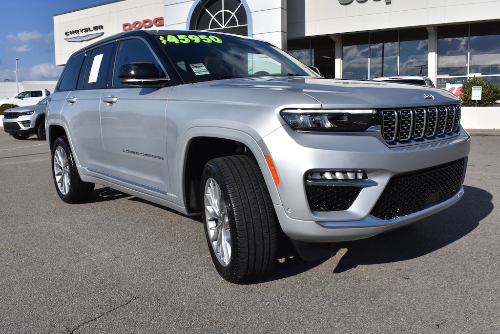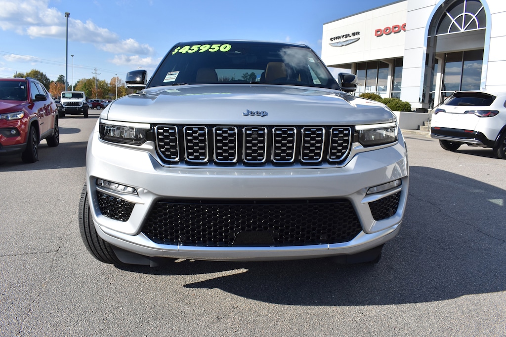 Clean CARFAX. CARFAX One-Owner. Silver Zynith 2023 Jeep Grand Cherokee Summit 4WD 8-Speed Automatic 3.6L V6 24V VVT 10 Speakers, 19 Speakers High Performance Audio, 2nd-Row Manual Window Shades, 3.45 Rear Axle Ratio, 4-Wheel Disc Brakes, 950 Watt Amplifier, ABS brakes, Active Noise Control System, Adaptive suspension, ADV Protech Group IV, Air Conditioning, Alloy wheels, AM/FM radio: SiriusXM with 360L, Anti-whiplash front head restraints, Audio memory, Auto High-beam Headlights, Auto-dimming door mirrors, Auto-dimming Rear-View mirror, Auto-leveling suspension, Automatic temperature control, Auxiliary Battery, Brake assist, Bumpers: body-color, Compass, Delay-off headlights, Dual front impact airbags, Dual front side impact airbags, Electronic Stability Control, Emergency communication system, Four wheel independent suspension, Front anti-roll bar, Front Center Armrest w/Storage, Front dual zone A/C, Front fog lights, Fully automatic headlights, Garage door transmitter, Genuine wood dashboard insert, Genuine wood door panel insert, Heads-Up Display, Heated door mirrors, Heated front seats, Heated rear seats, Heated steering wheel, Illuminated entry, Knee airbag, Leather steering wheel, Low tire pressure warning, Luxury Tech Group V, Memory seat, Nappa Leather Seats, Navigation System, Night Vision w/Pedestrian-Animal Detection, Normal Duty Suspension, Occupant sensing airbag, Outside temperature display, Overhead airbag, Panic alarm, Passenger door bin, Power door mirrors, Power driver seat, Power Liftgate, Power moonroof, Power passenger seat, Power steering, Power windows, Quick Order Package 22S, Radio data system, Radio: Uconnect 5 Nav w/10.1" Display, Rain sensing wipers, Rear air conditioning, Rear anti-roll bar, Rear dual zone A/C, Rear window defroster, Rear window wiper, Rearview Autodim Digital Display Mirror, Remote keyless entry, Security system, Speed control, Speed-Sensitive Wipers, Split folding rear seat, Spoiler, Steering wheel memory, Steering wheel mounted audio controls, Tachometer, Telescoping steering wheel, Tilt steering wheel, Traction control, Trip computer, Turn signal indicator mirrors, Variably intermittent wipers, Ventilated front seats, Voltmeter, Wheels: 20" x 8.5" Fully Painted Aluminum Silver, Wireless Charging Pad.