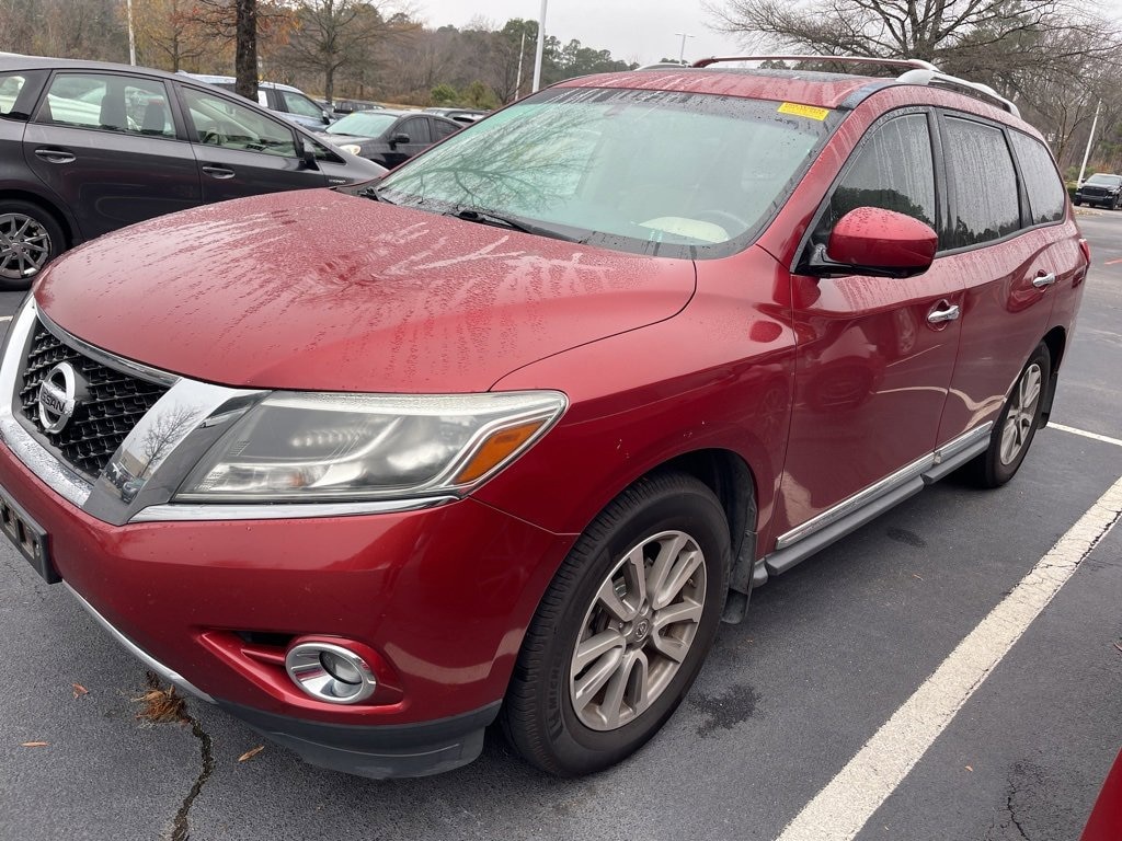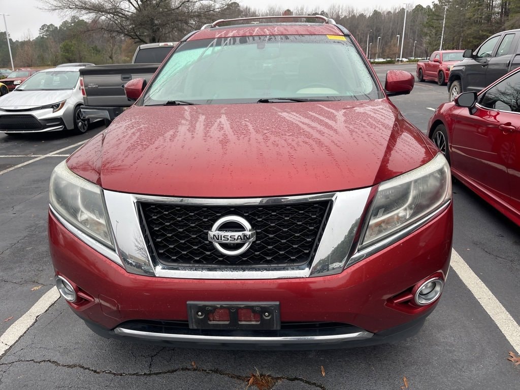 CARFAX One-Owner. Cayenne Red Metallic 2016 Nissan Pathfinder SL FWD CVT with Xtronic 3.5L V6 AS IS CAR, LOCAL TRADE IN, BACK UP CAMERA, LEATHER, HEATED SEATS, PANORAMIC SUNROOF, NAVIGATION, BLIND SPOT MONITOR, SMART KEY W PUSH BUTTON START, POWER LIFTGATE, MUST SEE TO APPRECIATE!, 18 Aluminum Alloy Wheels, 3rd row seats: bench, ABS brakes, Air Conditioning, Cargo Package, Compass, Dual Panorama Moonroof, Electronic Stability Control, First Aid Kit, Four wheel independent suspension, Front Center Armrest w/Storage, Front dual zone A/C, Fully automatic headlights, Garage door transmitter: HomeLink, Heated Bucket Seats, Heated rear seats, Heated steering wheel, Leather Seating Surfaces, Leather steering wheel, Low Cost Around View Monitor System, Memory seat, Power driver seat, Power Liftgate, Power steering, Power windows, Radio: Bose Audio System w/AM/FM/CD & 13 Speakers, Rear air conditioning, Rear Parking Sensors, Rear seat center armrest, Reclining 3rd row seat, SL Premium Package, Steering wheel mounted audio controls, Telescoping steering wheel, Tonneau Cover, Tow Hitch Receiver w/Integrated Finisher, Traction control, Trailer Harness.