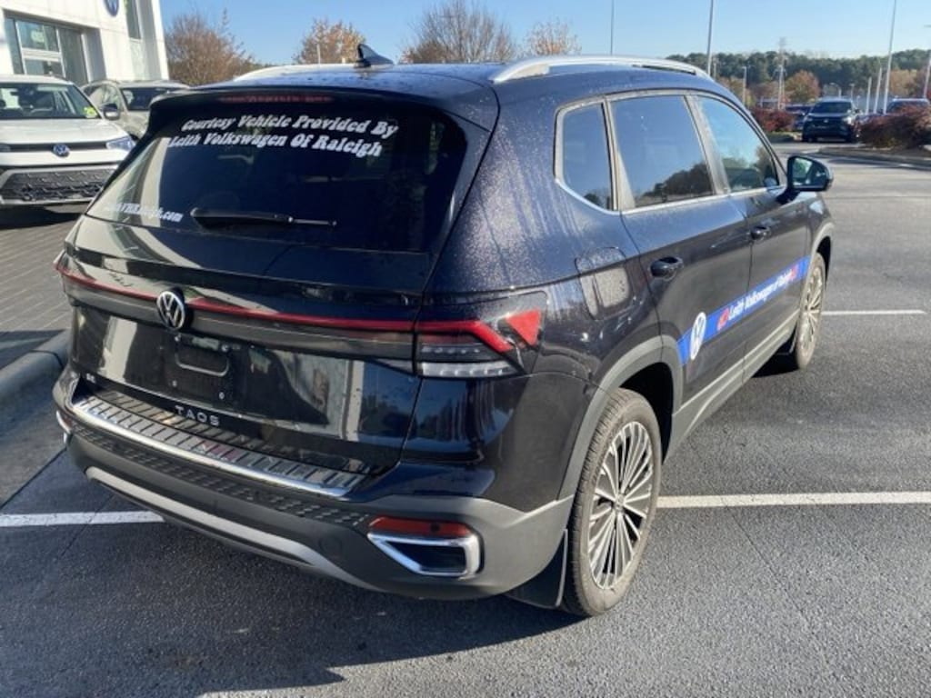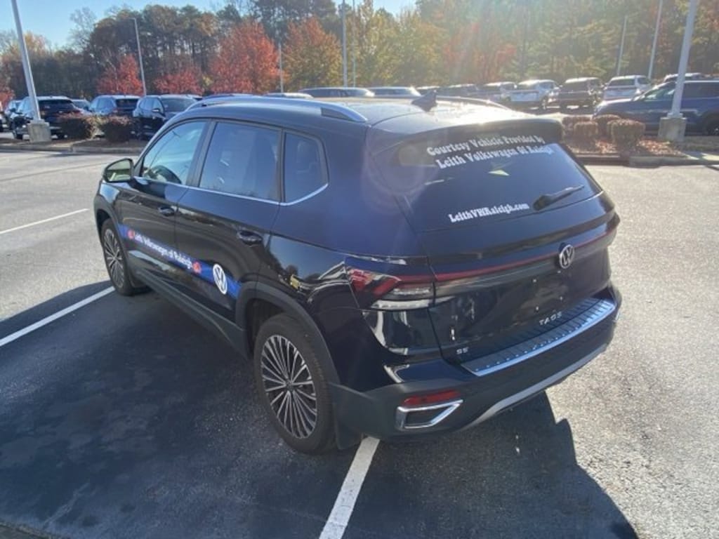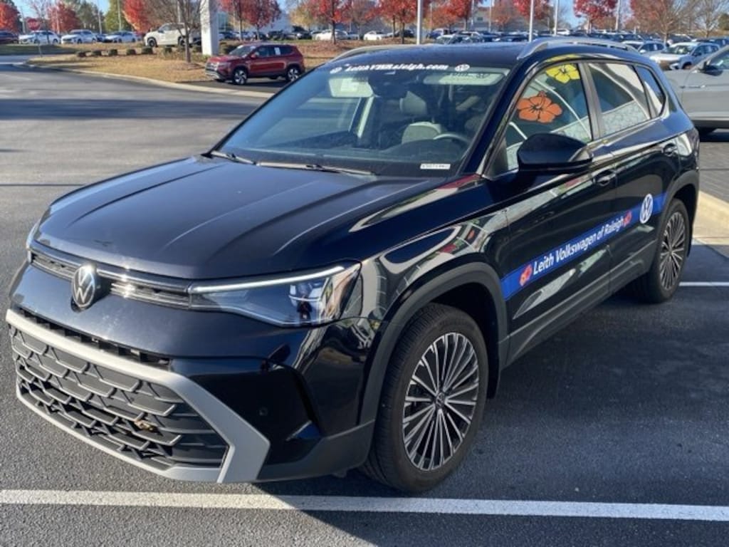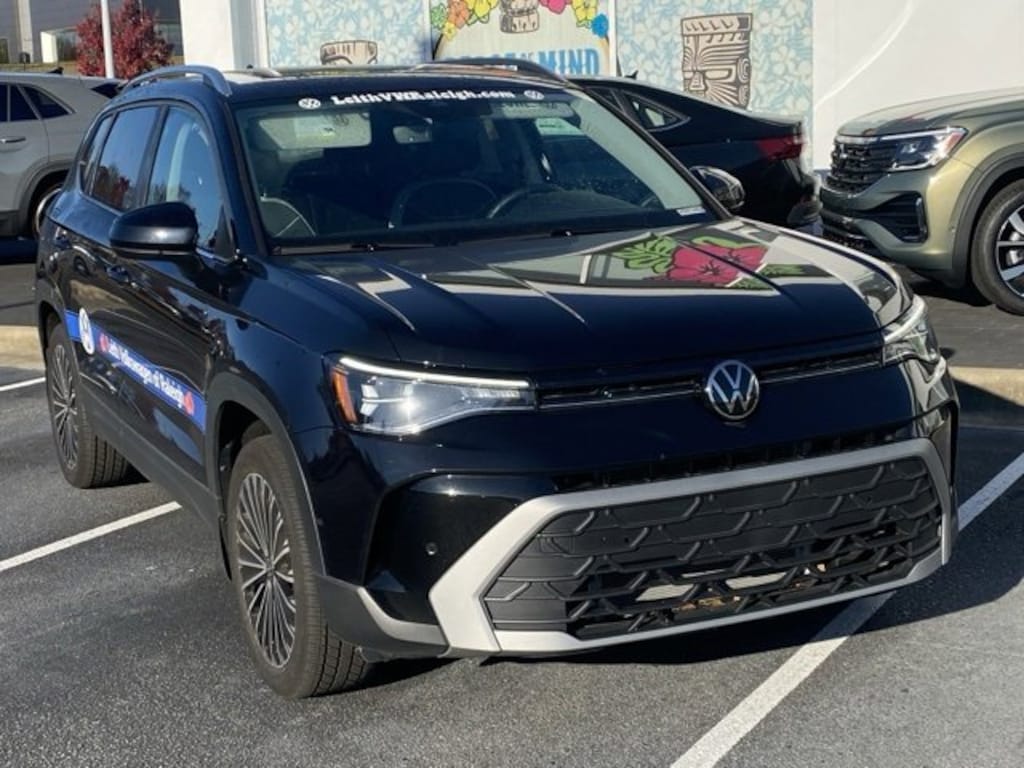 Certified. Deep Black Pearl 2025 Volkswagen Taos 1.5T SE FWD 8-Speed Automatic with Tiptronic 1.5L I4 Turbocharged DOHC 16V LEV3-SULEV30 174hp Local Trade, Non-Smoker, Serviced Here, Purchased Here, Certified Warranty - 2 Years / 24,000 Miles, AM/FM radio: SiriusXM with 360L, Automatic temperature control, Brake assist, CloudTex & Cloth Seating Surfaces, Electronic Stability Control, Emergency communication system: VW Car-Net Safe & Secure 5-year, Exterior Parking Camera Rear, Front dual zone A/C, Heated Front Bucket Seats, Heated steering wheel, Panoramic Sunroof Package, Power driver seat, Radio: MIB3 Composition Media AM/FM/HD, Rain sensing wipers, Rear window wiper, Remote keyless entry, Rubber Mats Kit, Speed-sensing steering, Split folding rear seat, Steering wheel mounted audio controls, Traction control, VW Care, Wheels: 18" 2-Tone Machined Alloy.